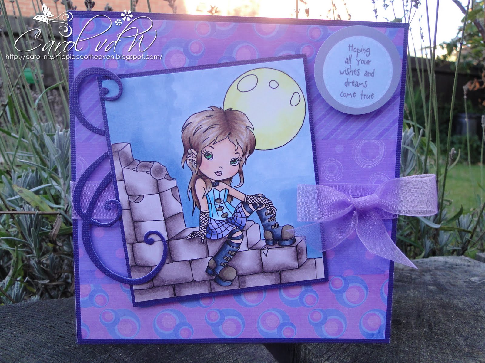 I bought a plain candle and stamped the same image onto tissue paper and coloured it in with my Copics then placed the tissue paper over the candle and covered it with greaseproof paper and heated it with my heatgun and voila one stamped image on the candle. Hope I've explained that well enough for those who would like to give it a try. Thank you for stopping by. Lotsa luv, hugs xxxx